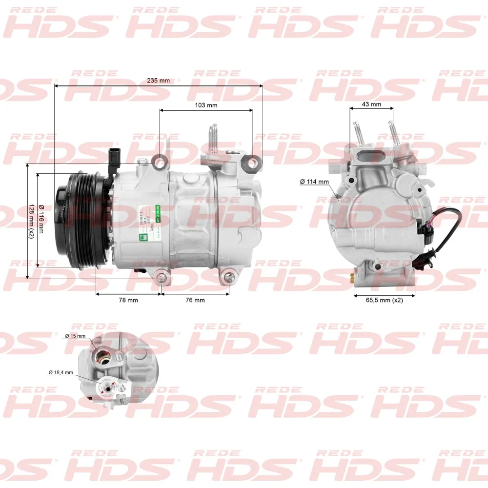 Dimensões: | Gerais: Altura (h): 190mm x Comprimento (l): 235mm x Largura (b): 130mm Polia: 109mm |